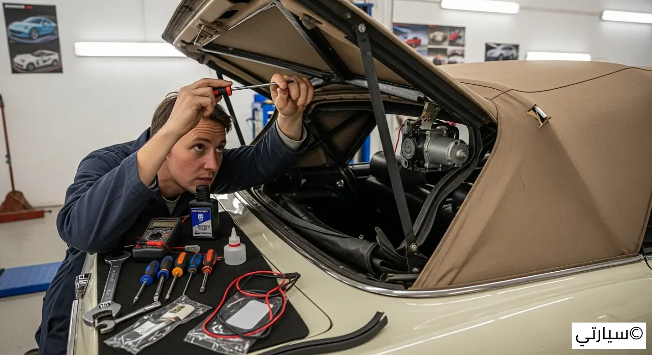 - اعرف حدودك جيداً: هناك فرق شاسع بين إصلاح قطع صغير في القماش باستخدام رقعة لاصقة، وبين محاولة فك النظام الهيدروليكي أو الكهربائي المعقد للسقف. محاولة إصلاح شيء يتجاوز خبرتك قد تحول مشكلة بسيطة إلى كارثة تكلف آلاف الريالات لإصلاحها.