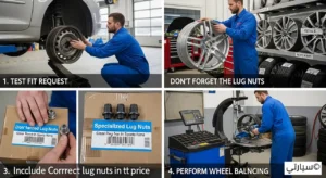 1. اطلب تجربة التركيب: قبل دفع المبلغ كاملاً، اطلب من المحل تركيب جنط واحد فارغ (بدون إطار) على سيارتك. هذا يضمن 100% أنه لا يحتك بنظام الفرامل أو التعليق.